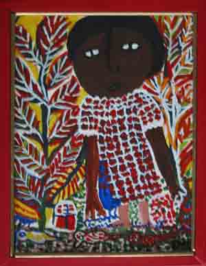 | #2436 Louisianne St. Fleurant 16x12, Acrylic on Canvas "Woman w striped dress" 2004 $375 framed in wood, painted red. SOLD June 2009 |
