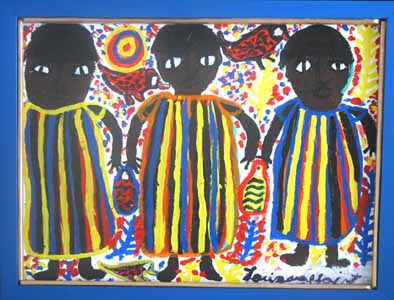 | #2448 Louisianne St. Fleurant 12x16" Acrylic on canvas 'Three Women"2004. $375 framed in wood, painted blue. SOLD Sept. 2009 |