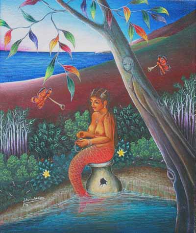 | #2384 JAJ Luberisse 16x20" Acrylic on canvas " la Sirene Observed" 2003 $285 Framed SOLD July 2005. |