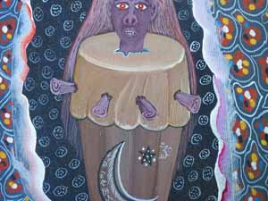 | #2162 Frantz Zephirin. 10x8" Acrylic on canvas "Assotor, Spirit of the Drum". 1999 $350 framed SOLD. May 2005. |